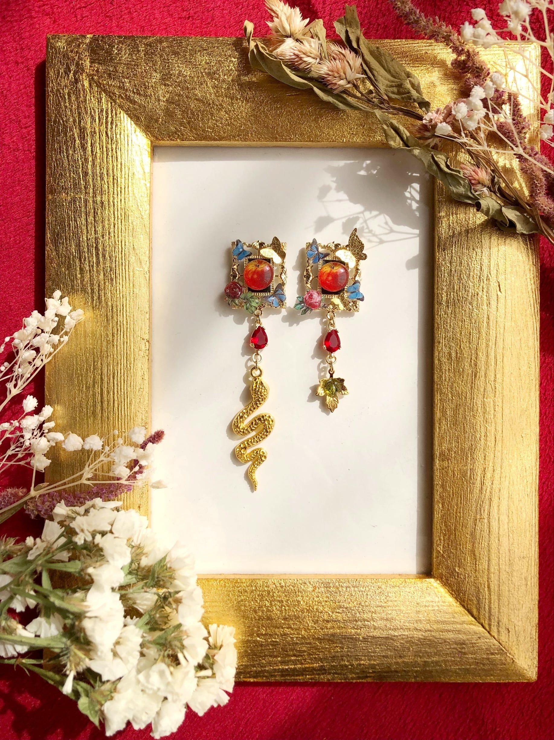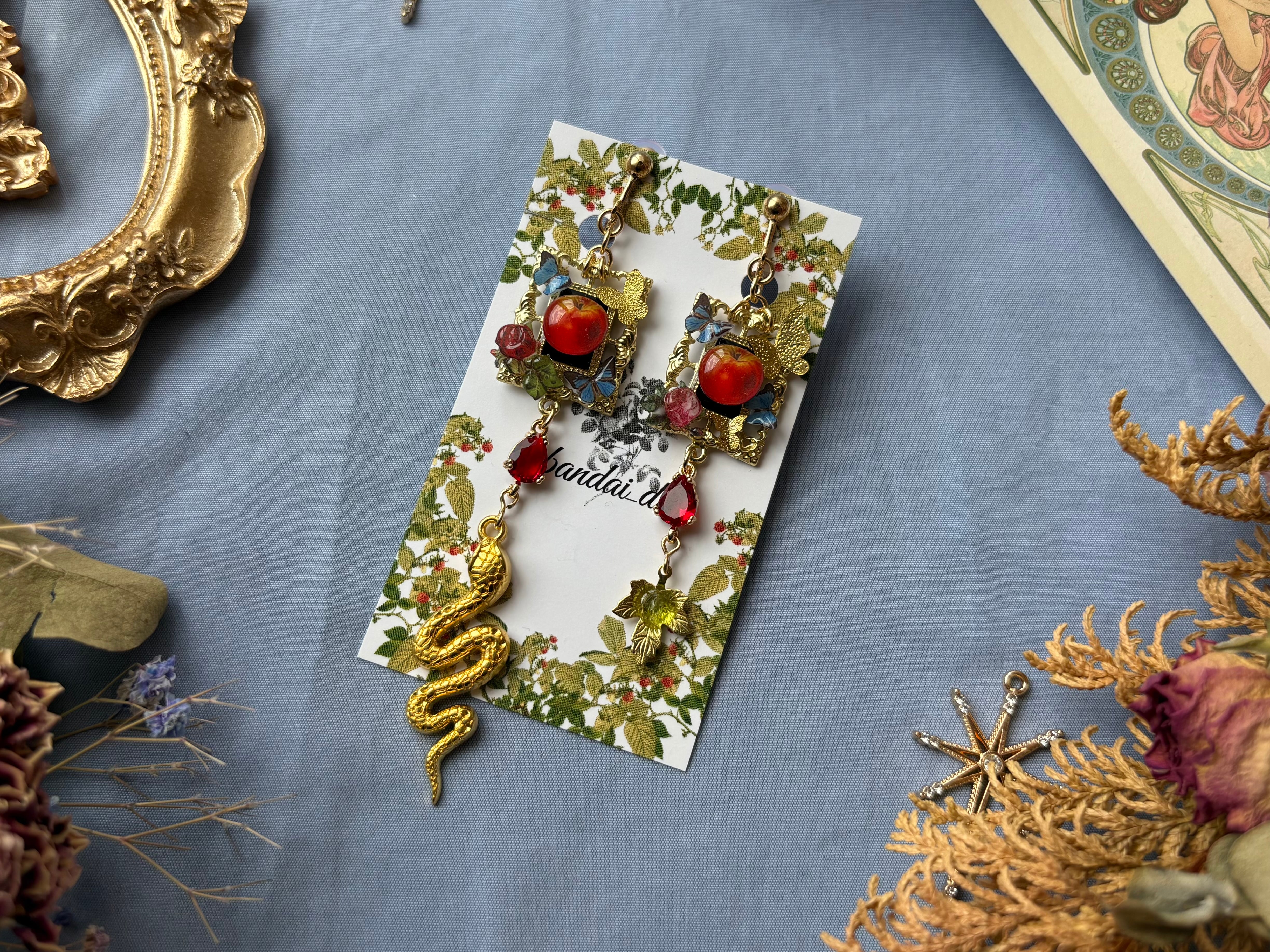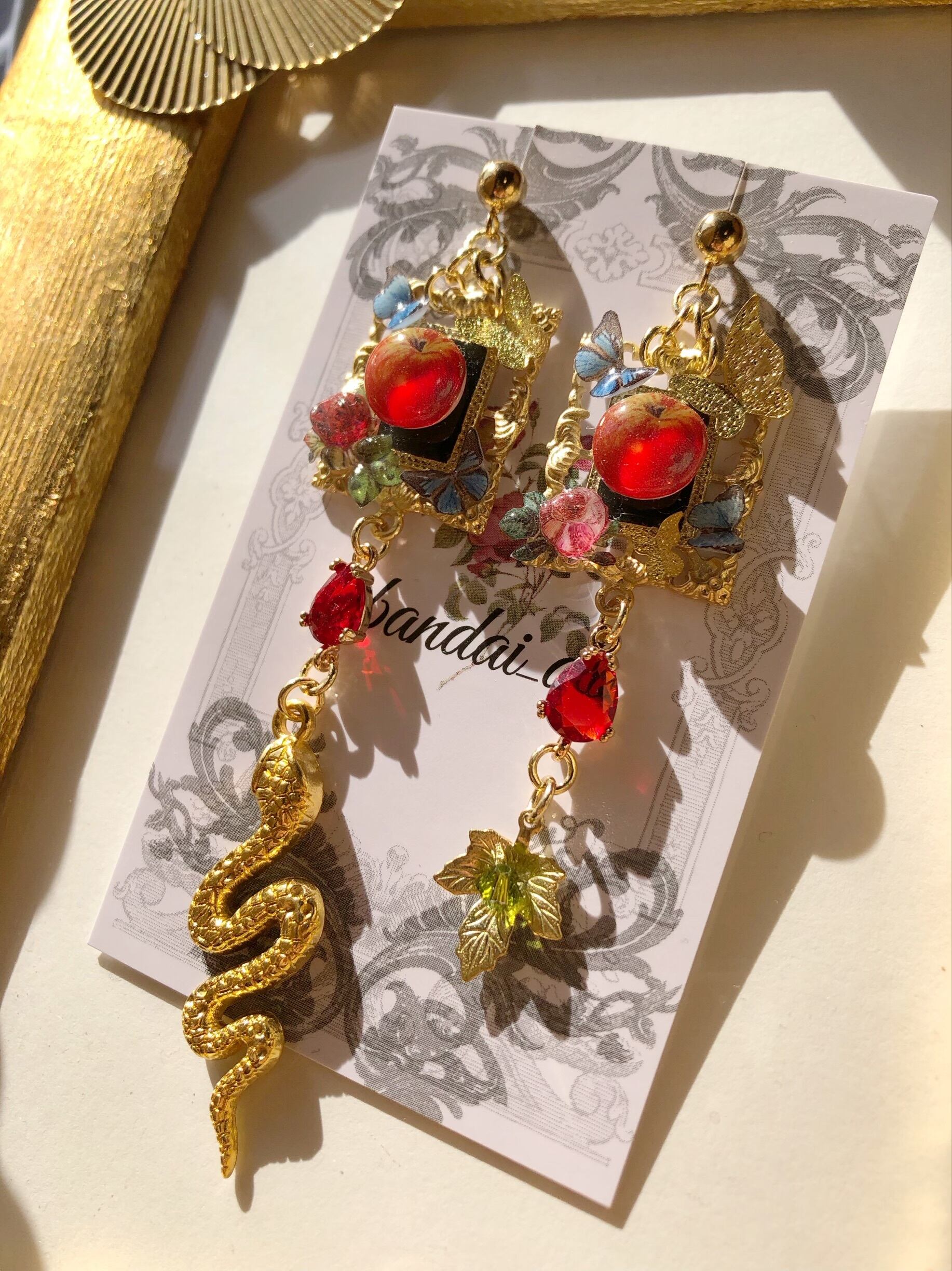 楽園 楽園追放 名画 絵画 りんご リンゴ 林檎 ヘビ 蛇 スネーク 宗教 神話 聖書 ゴシック レジン レジンアクセサリー アクセサリー ピアス イヤリング